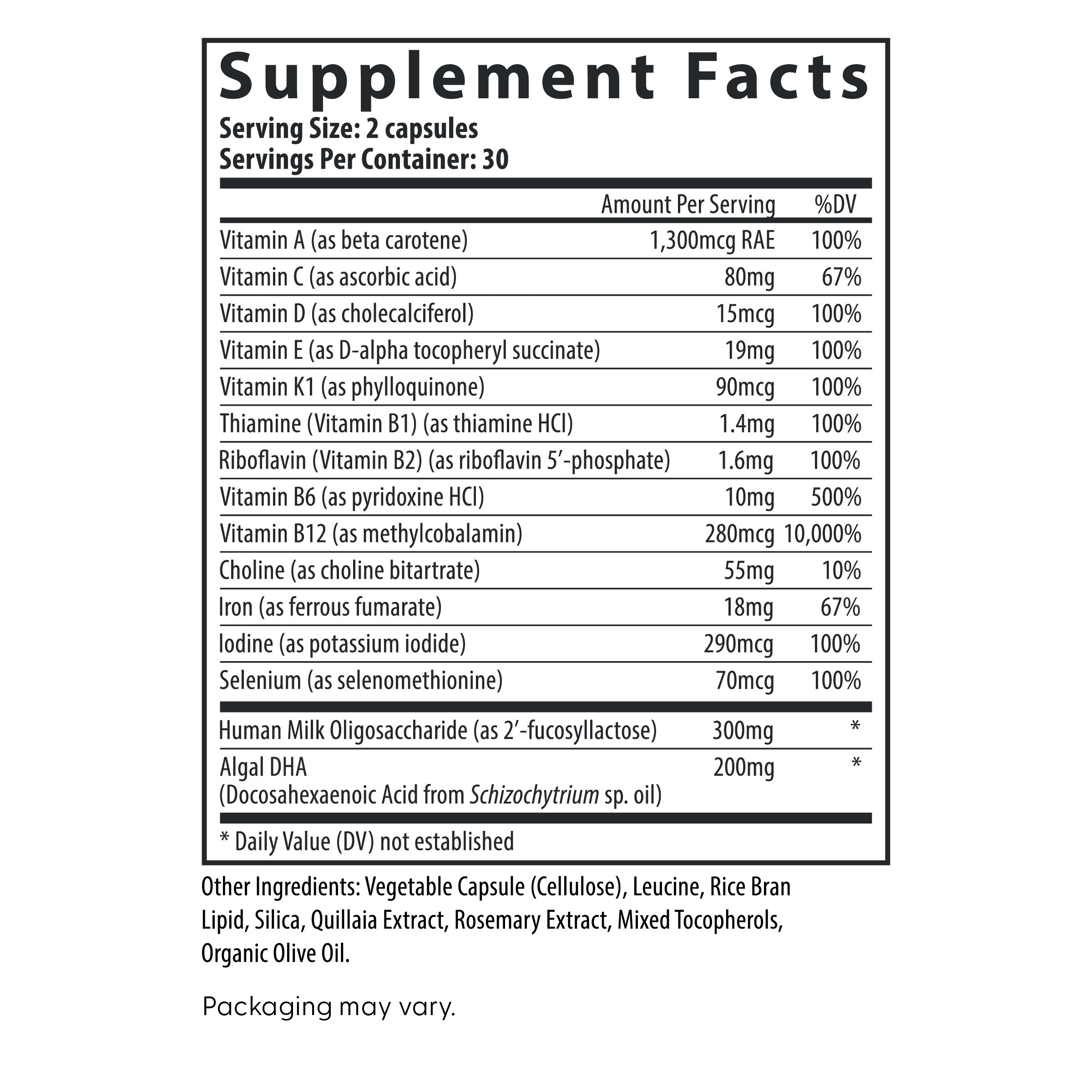 Selenium (as selenomethionine) | 70mcg | 100% | Human Milk Oligosaccharide (as 2'-fucosyllactose) | 300mg | * |
